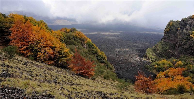 A partire dalla fine di agosto, potrete fare un’immersione nei colori arancio, oro, bronzo e porpora degli alberi che ricoprono i dintorni e la parte più bassa del vulcano siciliano.