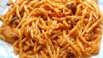 Il menù prevede: fusilli felittesi al ragù, fusilli felittesi con funghi porcini e salsiccia di cinghiale, cavatielli con farina di castagne al ragù, cavatielli con funghi porcini e salsiccia di cinghiale, sfrionzola.