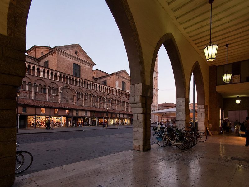 Innanzitutto, arrivare in treno è senz’altro una buona soluzione. Dalla stazione, il viale che conduce in centro vi porterà diretti alla piazza principale, quella del Castello Estense, cuore pulsante di ogni visita turistica della città e suo punto di partenza. Percorrendo il viale, non scordate di ammirare ai suoi lati alcuni edifici residenziali in stile Liberty e, se venite in Autunno, il foliage dei ginkgo che fiancheggiano la strada.