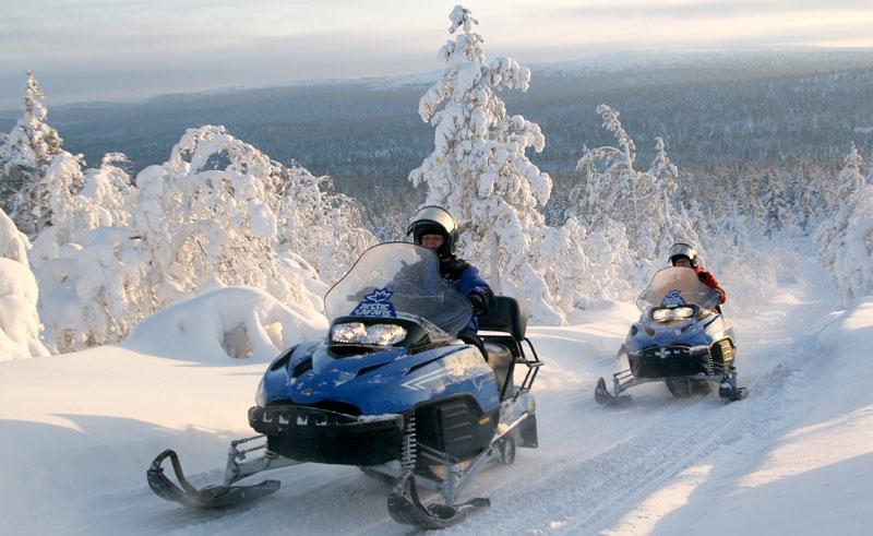 Per avere un primo assaggio della Finlandia Centrale a gennaio, prenotate un giro nella foresta finlandese a bordo di una motoslitta o di una slitta trainata dagli husky.