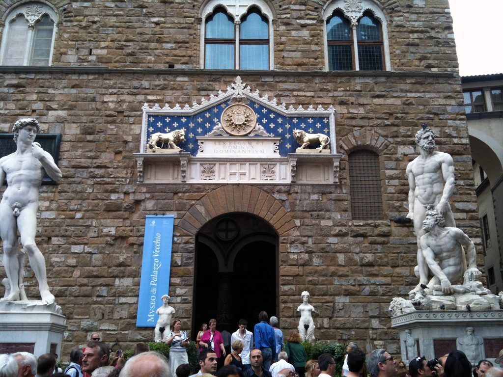 Adesso, avete il permesso di raggiungere piazza della Signoria: fermatevi ad osservare il rilievo con la ricostruzione di Firenze romana, cercate la pietra commemorativa posta nel punto in cui fu arso Girolamo Savonarola e rendete omaggio al Biancone, che non è il David aggraziato posto vicino all’entrata di Palazzo Vecchio, ma è quell’omone sproporzionato nella Fontana del Nettuno e preso in giro nei secoli dai fiorentini per la sua bruttezza.