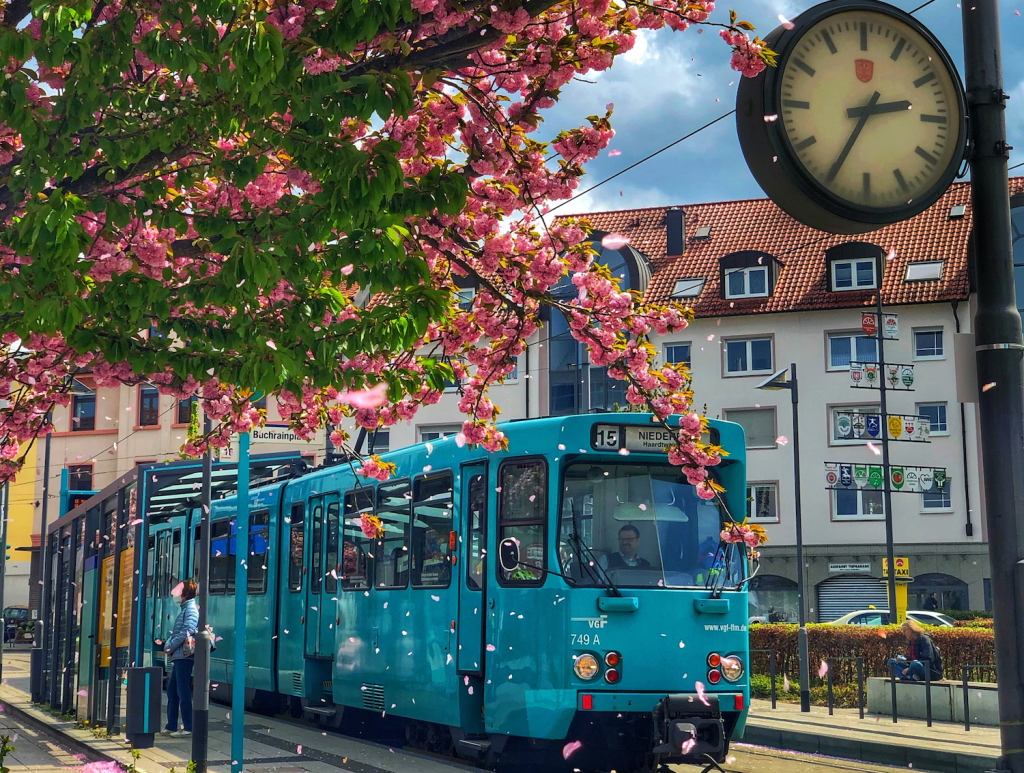 Facendo una passeggiata sulla Berger Straße si vede subito la molteplicità di negozi di fiori. Tulipani e rose salutano con un mare di colori – un contrasto benefico per l’anima in una città con grattacieli grigi.