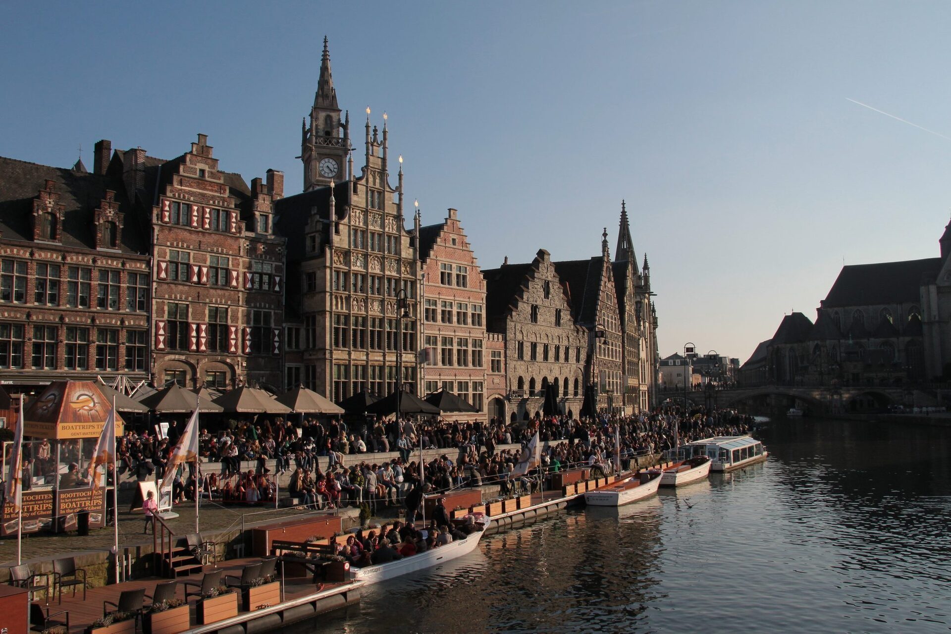 Ma veniamo alla parte più caratteristica e che ho apprezzato maggiormente di Gand: si tratta del Graslei e Korenlei, ovvero i due punti da cui partono le visite sui battelli, circondati dalle caratteristiche casette a gradoni delle corporazioni dei mercanti. Dal ponticello che le sovrasta si gode uno splendido panorama sul fiume sul centro cittadino.