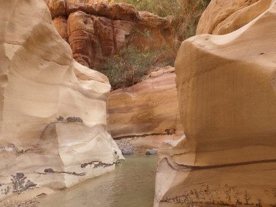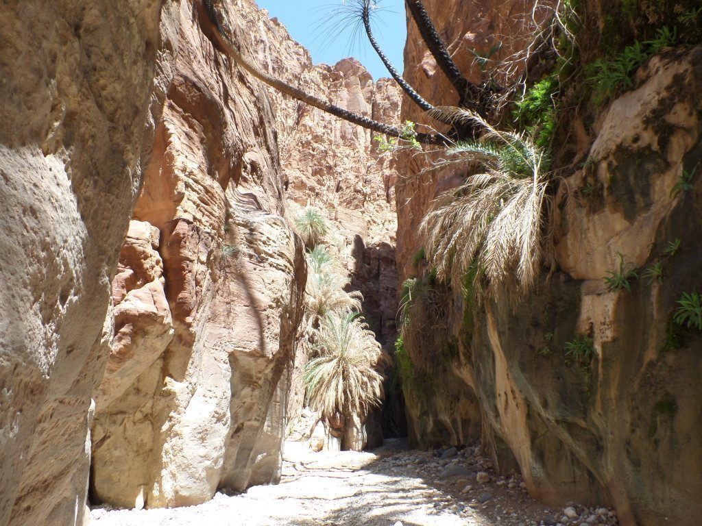 Il percorso è una esperienza di conoscenza dell’ambiente affascinante, dove la guida spiega tutto, dalla conformazione delle rocce (principalmente arenaria, in tante sfumature di colore), alla natura delle piante e l’uso che le tribù beduine ne fanno da tempi immemorabili. Certi aneddoti rasentano la magia ma sono comunque estremamente interessanti. Si trovano orme fresche di animali (sciacalli, muli) e si cammina sempre nell’acqua, che è fresca ma non fredda come i nostri torrenti di montagna. Il canyon in certi punti è stretto, le pareti alte 40 metri lasciano poco spazio alla luce; in altri punti si apre e lungo le pareti si vedono attaccate con forza tante palme.