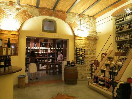 Scendendo un’antica scalinata in pietra vi ritroverete in un curatissimo ambiente sotterraneo tappezzato di bottiglie di vino toscano e non solo; qui potrete degustare un centinaio di tipi di vini diversi ed acquistarne molti di più. Questa enoteca è la più fornita di tutto il Chianti, ed è piacevolissimo perdersi tra le isole di degustazione, divise per tipologia di vino, e magari sgranocchiare uno spuntino. La cantina è disseminata di piccoli tavoli in legno dove potrete accomodarvi per raccogliere i vostri appunti di degustazione e decidere quale vino acquistare, se lo vorrete (e credetemi, ve ne verrà voglia). Il tutto è organizzato impeccabilmente e potrete chiedere l’assistenza al preparatissimo personale di sala.