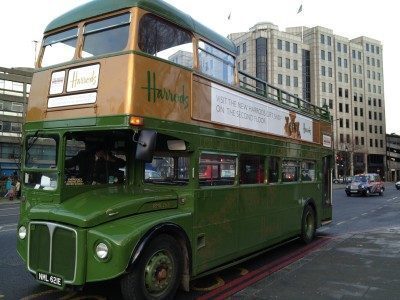 A Londra un modo per visitare la città con una guida senza camminare è prendere il l’Harrods Vintage Tour. Il bus del grande magazino Harrods è un bus a due piani con tetto aperto che offre la possibilità di vedere i monumenti di Londra, tra questi il London Eye, l’abbazia di Westminster, Trafalgar Square, Buckingham Palace, la Cattedrale di St Paul e tante altre.