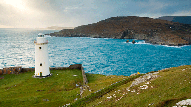 È un’ isola molto tranquilla (in quanto non raggiungibile da autobus turistici), molto ventosa e molto suggestiva grazie alle sue rovine e all’omonimo faro (Valentia Island Lighthouse), che è possibile visitare anche all’interno al costo di 5€. Quest’ultimo merita sicuramente una visita in quanto lo scenario che vi si presenterà sarà davvero unico: onde altissime che si scagliano violentemente contro gli scogli grazie al forte vento, praterie verdi, rovine e l’oceano blu. È curioso sapere che, da una fortezza non lontana dal faro, nel 1866 venne posto il primo cavo transatlantico per le comunicazioni morse che arrivava fino in Canada, incredibile!