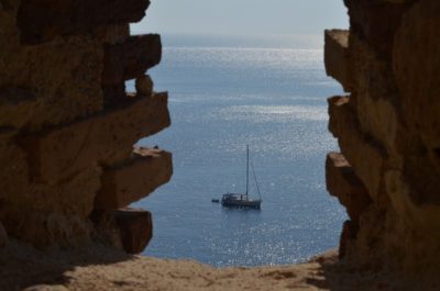 Il giorno del nostro arrivo, armati di cartina del posto, abbiamo deciso di esplorarla. Presa la strada principale, in pochi minuti, abbiamo raggiunto il centro cittadino: una piazza contornata da qualche ristorante e alcuni locali dove fare aperitivo e aspettare l’ora di cena. Proseguiamo sempre sulla strada asfaltata fino a raggiungere un bivio dove troviamo un cartello con indicati i vari percorsi che si possono seguire sull’isola. Noi decidiamo di percorrere quello perimetrale così da avere un’idea di tutta l’isola e con la possibilità di ammirare lo splendido mare che ci circonda. Continuiamo fino a raggiungere il faro sulla punta ovest dell’isola per poi proseguire sulla costa sud.