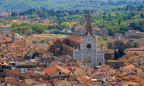 Santa Croce è uno dei capolavori indiscussi dell’arte fiorentina, al suo interno si possono ammirare, un’eccellente architettura, sculture, affreschi, vetrate e le tombe dei grandi del passato. Michelangelo, Galileo, Machiavelli riposano il sonno eterno proprio tra queste mura.