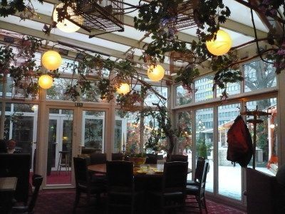 La cosa belle è l’ambiente. Il locale è pieno di particolari, foglie, alberi, uccellini, ma anche casette e gnomi, sembra davvero di essere in mezzo ad un giardino. Accogliente e particolare lo consiglio come locale o ristorante per chi desidera fare un salto allo zoo di Berlino o capita nella parte ovest della città.