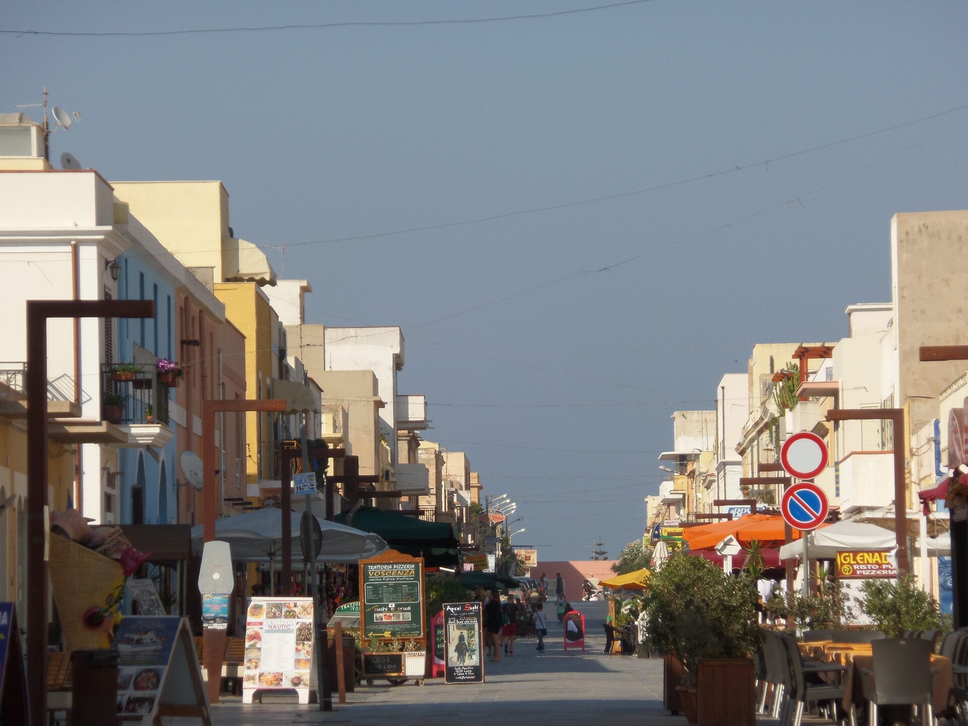 La città di Lampedusa concentra tutte le attrazioni turistiche in un’unica, lunga strada: via Roma. Su questa arteria chiusa al traffico i turisti passeggiano la sera tardi, in cerca di fresco, per il consueto “struscio” prima e dopo l’aperitivo, per la cena e per sedere a un tavolo mentre un gruppo o un cantante si esibiscono.