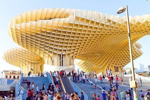 Mori e Cristiani si scontraro sul suo territorio, e Siviglia ne porta i segni. Così dalle ceneri della sua moschea, nacque la più grande cattedrale gotica al mondo, e le stanze e i patii segreti in stile mudejar dell’Alcazar Real ospitarono re cattolici. E’ per questo che in pieno centro cittadino, a lato dell’Iglesia de la Anunciación, in Plaza Encarnación non ti aspetti proprio di trovare questa enorme struttura moderna, dai tratti valenziani.