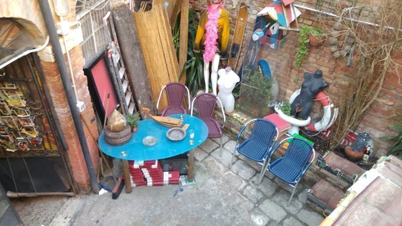 Anche perché in tal caso, cambia poco, basta avere scarponi che proteggano dall’acqua e si può restare comunque a sfogliare ed acquistare i libri. I testi, infatti, sono tutti sollevati di quindici centimetri da terra in modo tale da essere protetti dall’acqua e molti di questi sono sistemati nelle vasche da bagno, su delle barche o su… caratteristiche gondole.