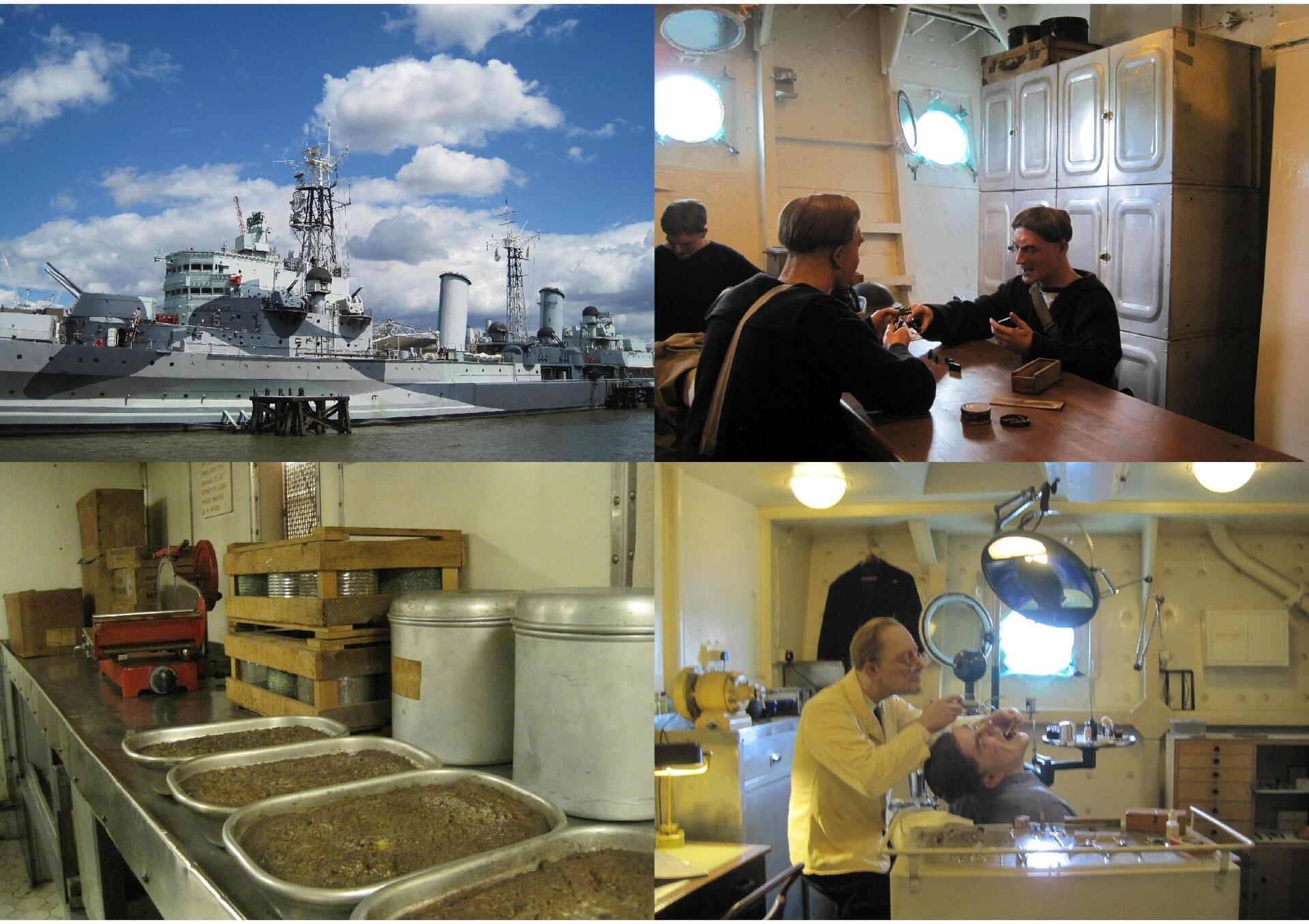 All’interno di questa nave sono state ricostruite scene di vita quotidiana per ricreare l’atmosfera durante la navigazione e le attività svolte dai marinai durante i lunghi periodi di trasferta. E’ tutto ben studiato e sono stati riprodotti persino gli odori e i suoni dei vari ambienti. Non manca niente: c’è la cucina, lo stoccaggio del cibo con i grandi freezer per contenere la carne, le sale da pranzo, gli spazi per lo svago, la sala operatoria, il dentista con tanto di rumore del trapano e di odore di disinfettante, i bagni, gli spazi dormitorio dove i marinai semplici si riposavano su amache, lo spaccio dove acquistare bibite e dolciumi, l’area dove distribuivano il rum, persino le celle di punizione dove venivano rinchiusi i marinai indisciplinati.