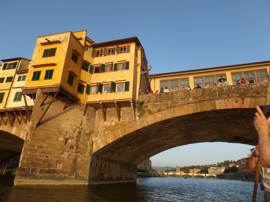 Oltre a passare sotto il celeberrimo Ponte Vecchio si possono vedere i famosi palazzi del centro storico da una prospettiva totalmente nuova: gli Uffizi, il Corridoio Vasariano, le botteghe dei gioiellieri sul ponte più antico della città, le cui vecchie pietre formano, per qualche minuto, il nostro “tetto”. E poi la Chiesa di San Jacopo Soprarno, il magnifico Palazzo Corsini, i ristoranti con veranda che guardano il fiume, costruiti nel dopo guerra al posto delle antiche case che i nazisti sacrificarono, per salvare Ponte Vecchio.