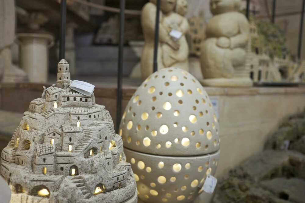 Un altro locale di artigianato che ho visto e che mi è molto piaciuto è il Bottegaccio di Dino Diddiego dove si producono principalmente presepi in cartapesta, ma anche maioliche e mosaici, le famosissime pupe e i cucci. I cuccù sono dei fischietti tipici della città di Matera, che oltre ad essere belli, colorati e ornamentali, vengono messi sopra le culle dei bambini appena nati perché sono degli scacciapensieri.