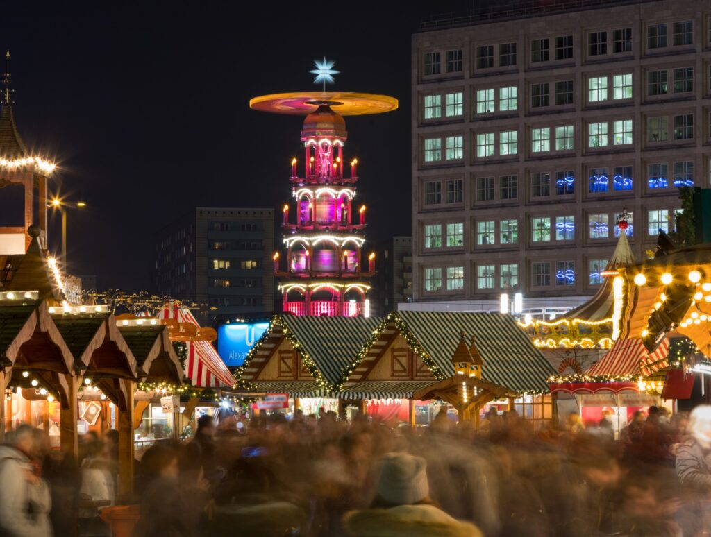 Uno dei più grandi mercatini di Berlino si svolge ai piedi dell’iconica torre della Televisione: ad Alexanderplatz si possono acquistare i prodotti di numerose bancarelle di artigiani, da ceramisti a soffiatori di vetro e fabbri, scaldarsi con un vin brulé acquistato al piano terra della piramide di Natale più grande d’Europa o salire al primo piano per una vista panoramica sul mercatino! Nei dintorni della piazza ci si può inoltre divertire con la pista di pattinaggio su ghiaccio (nei pressi della fontana del Nettuno) nonché un vero e proprio parco divertimenti con giostre e ruota panoramica (nei pressi del centro commerciale Alexa).