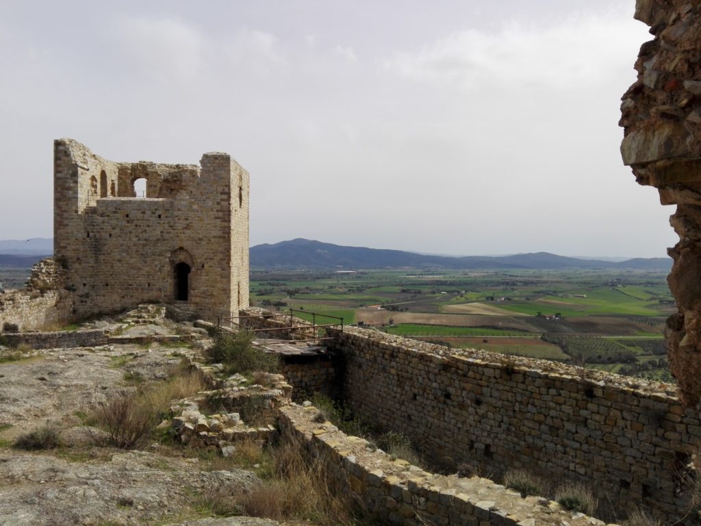Per arrivarci è necessario lasciare l’auto ai piedi della rocca e percorrere a piedi la ripida stradina che porta all’ingresso dell’area storica. La posizione di queste macerie è ovviamente invidiabile, da lassù si domina il paesaggio a 360 gradi e nelle giornate terse si vede il mare del vicino Golfo di Follonica. In tutta questa vasta area sulla sommità della collina si vedono i resti di due edifici preminenti: quelli del Palazzo signorile diroccato, ma di cui ancora si riconoscono le grandi finestre e le porte. Di fronte a questo si erge una torre, quasi intatta, che ha a piano terra un salone dalla copertura a volte a crociera.