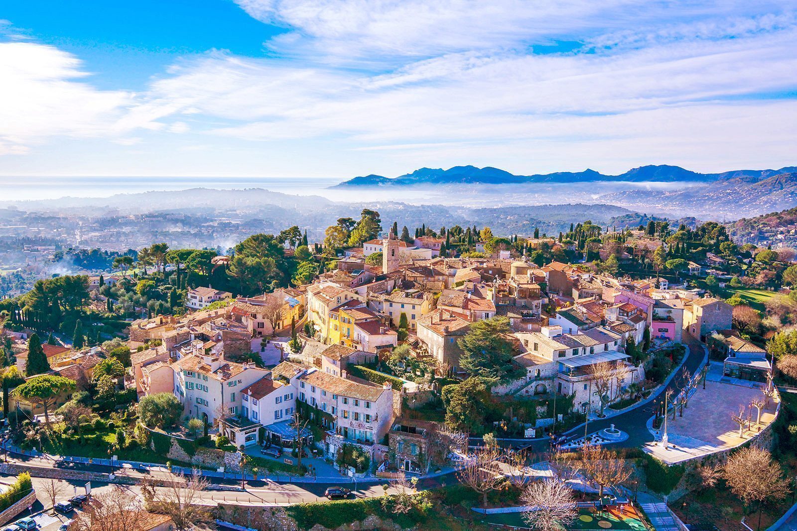 Dall’alto della sua posizione la città di Mougins domina sul territorio circostante fino alla Baia di Cannes.