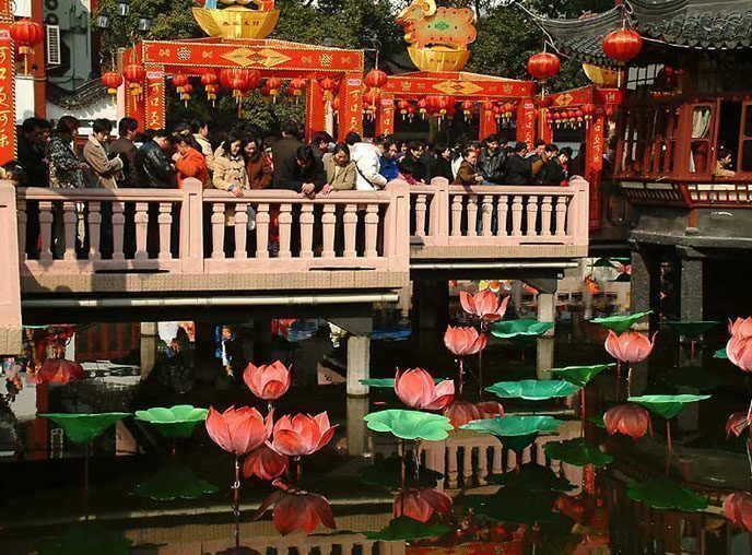 Tornando poi nel cuore della città vecchia, troverete l’Huxinting Chashi, il Padiglione della casa del tè sul lago. Il lago è artificiale e pienissimo di carpe dorate sguazzanti. Per arrivare alla casa bisogna attraversare un curioso vialetto di pietre rettangolari messe a zigzag (pare siano poste così per confondere gli spiriti maligni che, come è risaputo, vanno solo dritti). Qui potrete osservare la cerimonia del tè e fare una degustazione durante la quale vi proporranno anche degli strani snack cinesi.