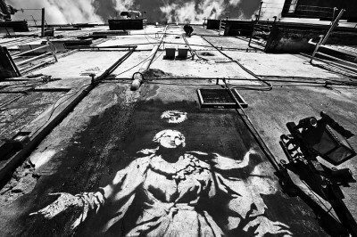 La Madonna con la pistola, invece, resiste ed è in ottime condizioni sebbene nell’agosto 2012 un altro writer abbia apposto uno scippo, per fortuna solo sullo sfondo nero, lasciando intatta la Madonna. Cos’ha di speciale questo lavoro? Non solo la perfezione che contraddistingue il nostro, non solo la pistola che funge da aureola a enfatizzare e condannare un sistema malavitoso che purtroppo affligge Napoli, ma anche e soprattutto il parallelismo con una immagine sacra della Madonna che sta proprio accanto al lavoro di Bansky.