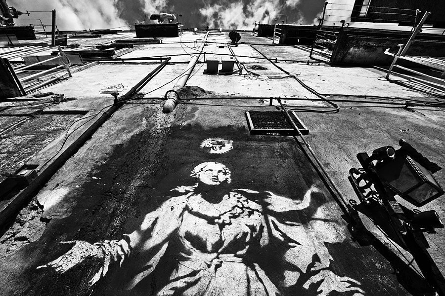 E’ il sacro e il profano. E’ quasi una metafora di Napoli, in bilico tra legalità e corruzione, tra bene e male, tra la fede e la sua strumentalizzazione. Se amate l’arte di strada e se amate l’arte nella sua accezione più ampia, non potete fare a meno di passare per piazza Gerolomini: troverete l’anima e il profumo di un artista ormai diventato leggenda.