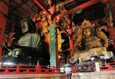 La struttura del tempio lascia subito senza fiato per le sue dimensioni (si tratta di una delle strutture in legno più grandi al mondo), ma lascia ancor più senza parole dopo aver varcato le porte e averne visto il contenuto: un’immensa statua di bronzo del Buddha alta 16 metri.