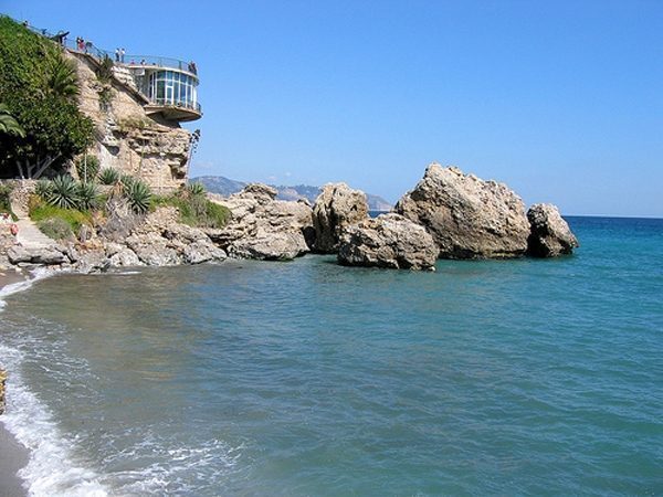 Alla sua estremità orientale, troviamo il paese di Nerja, uno dei primi della zona a sviluppare un turismo di massa (grazie alla pubblicità derivante dalla serie TV Verano Azul, di qualche decennio fa), ma che ora fa una gran bella figura rispetto al circondario, sotto i punti di vista di cui si parlava sopra. Probabilmente, la grande fortuna del paese è dovuta alla morfologia della costa, un susseguirsi di piccole e medie baie, intervallate dalle rocce che si protendono fin dentro al mare. In questo modo, non è stato fisicamente possibile costruire quelle file di strutture turistiche di 10-12 piani che tanto caratterizzano la gran parte dei paesi e città della Costa del Sol.