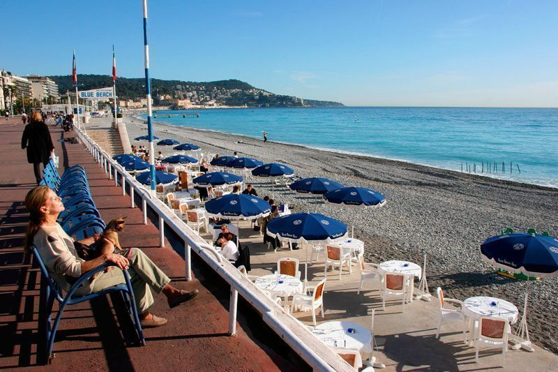 Lungo la Promenade la vita scorre, a tutte le ore del giorno e della notte: dalla gente che sonnacchia sulle tipiche sedie azzurre in ferro (oggi “totem” della passeggiata) perdendosi con lo sguardo in mare, fino all’orizzonte (in lontananza si intravede il faro di Cap d’Antibes), ai pattinatori, alle famiglie con i bambini, alle coppie che passeggiano mano nella mano, ai padroni con i cani, ai bambini che imparano ad andare in bicicletta, agli sportivi che si allenano facendo jogging.