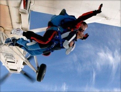 L’atmosfera, una volta arrivata là, era quella del gruppo di amici che, per svagarsi, si butta dagli aerei. Dopo essere stata imbragata e messa sull’aereo, è arrivato il momento del salto. Wow. Dovrebbero provarlo tutti una volta nella vita. C’è quel momento nel quale sei a 4200mt, vedi aprirsi lo portellone dell’aereo e quelli davanti a te iniziano a sparire, nel senso che si buttano giù. Poi arriva il tuo turno e ti ritrovi seduto sul bordo mentre ti tieni a qualcosa dell’aereo e ti chiedi se stai davvero per fare quello che credo. E un secondo dopo l’hai fatto. Quella si che è adrenalina pura, ma piacevole. La caduta fino ai 1500mt dura circa un minuto. Sei nel vuoto, precipiti, e poi in un istante ti sembra di fluttuare, il vento contemporaneamente ti sorregge e ti spinge giù. E poi si apre improvvisamente il paracadute e scendi dolcemente fino a terra. Quando ti ritrovi con il sedere per terra tutto si ferma, e tutto è diverso.