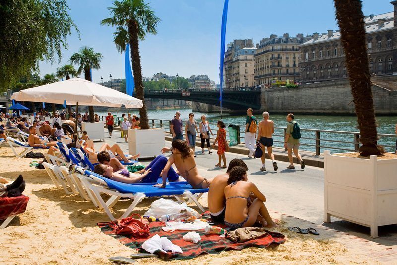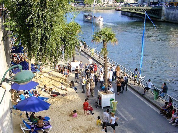 Quello che è iniziato nel 2001 grazie al Comune di Parigi oggi è praticamente un’istituzione. Ogni anno infatti tra luglio e agosto per circa 4-5 settimane, quasi 3km e mezzo di riva della Senna, per la precisione quella destra, presso il Municipio cittadino, sono attrezzate per ospitare attività ludiche e sportive, spiagge di sabbia o in erba, palme e per far rilassare tutti i parigini e i turisti che vengono o rimangono in città e oltre alla cultura e al lavoro vogliono anche svagarsi un po’, magari facendo finta di essere al mare.