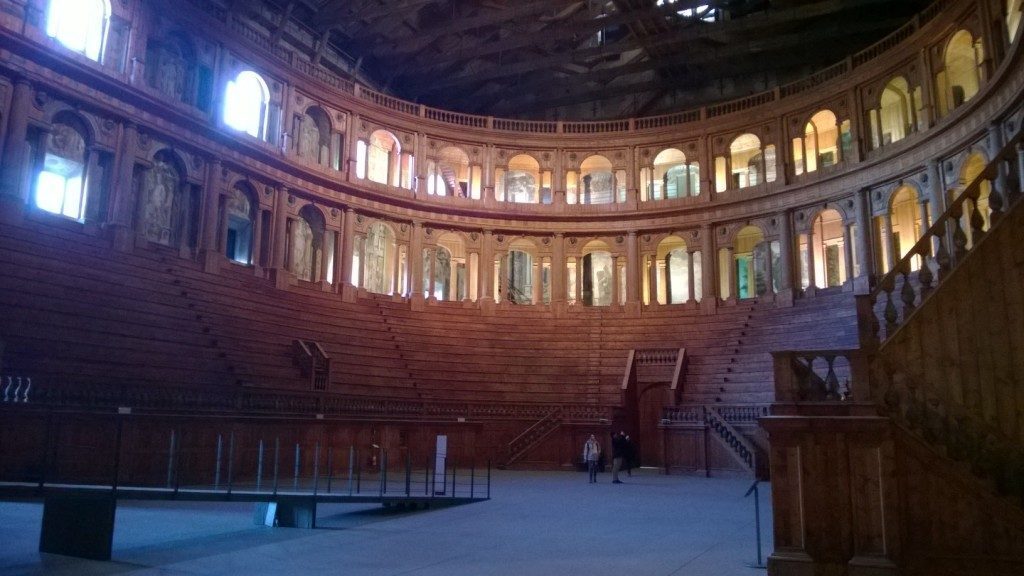Il primo è il teatro Farnese, un gioiello completamente in legno che si trova nel palazzo della Pilotta e che oggi comprende anche la Galleria nazionale. Sia chiaro che il teatro che vedrete, e che ancor oggi viene usato, è una ricostruzione fedele e meticolosa di quello che fu in parte distrutto e danneggiato da un bombardamento durante l’ultimo conflitto mondiale. Comunque sia l’ambiente è enorme e grandioso, non si può non rimanerne colpiti. Già che ci siete visitate la Galleria nazionale, ma fatelo nella mattina dato che spesso nel pomeriggio le sale ai piani superiori sono chiuse. Almeno a me è accaduto questo. I costi sono bassi, appena 6 euro per Galleria e Teatro Farnese che diventano solo 3 euro se li visitate dopo le 14.