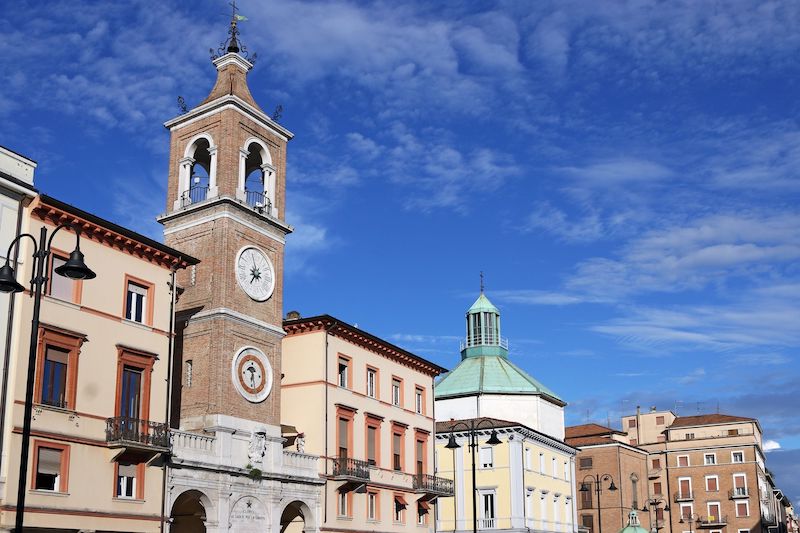 Merita una sosta Piazza Cavour e le sue architetture civili. Palazzo Garampi, sede odierna del Comune, il Palazzo dell’Arengo e del Podestà, sedi di mostre ed esposizioni, il teatro Galli, i cui lavori di ricostruzione sono iniziati l’inverno scorso e la Vecchia Pescheria, un lungo corridoio con banchi di marmo che apre le danze ai lunghi weekend invernali con locali per l’aperitivo e per il dopo cena.