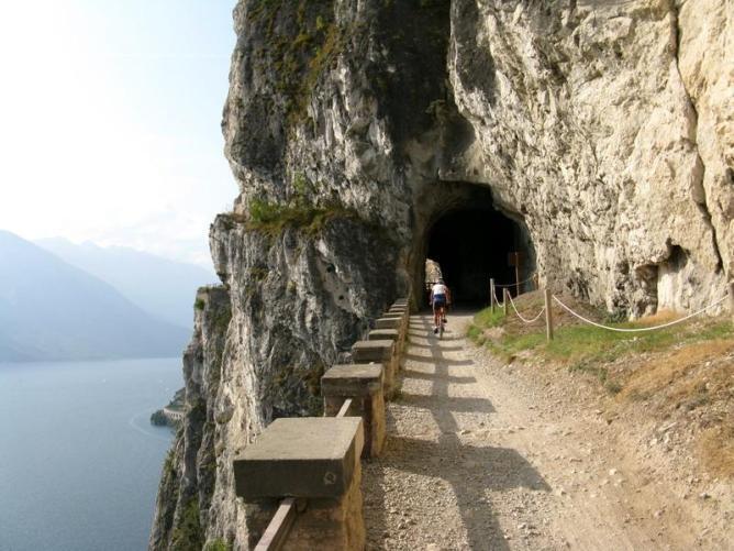 Il quarto luogo imperdibile è per me uno dei più belli in assoluto, il Sentiero della Ponale. Questa strada, in gran parte sterrata, offre una vista a dir poco spettacolare sul Lago di Garda. Si tratta di antico sentiero, scavato nella roccia nella seconda metà del 1800, che collega Riva del Garda alla Valle di Ledro. Sono circa 20 anni che non viene più utilizzata per i veicoli e, percorrendola, viene da chiedersi come abbiano potuto passarci davvero le auto un tempo. Oggi è pedonale e ciclabile quindi, se siete degli sportivi, è un tragitto ideale per una corsetta o per un giro in mountain bike. Si tratta di circa 6km, di più volendo proseguire, e si giunge ad un’altezza di circa 800 mt. Per arrivarci è possibile partire dal centro città, seguendo la costa e superando la storica imponente, seppur molto affascinante, centrale idroelettrica costruita dall’architetto Giancarlo Maroni, amico di Gabriele D’Annunzio e artefice del suo splendido Vittoriale a Gardone Riviera.