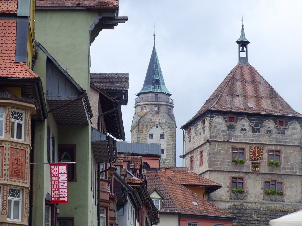 Quella che era la fortificazione di Rottweil è ancora in parte in piedi, in particolare la Hochturm (Torre alta) che sorge nel punto più alto della città. Edificata nel 13° secolo la torre è stata rimaneggiata, tanto che alla sommità si trova perfino un appartamento ricavato per un custode. Da lassù si gode di una straordinaria vista sulla valle del Neckar e sulla Foresta Nera; per accedervi si deve ritirare la chiave presso l’ufficio turistico, pagare un euro e lasciare un documento. Vale la pena!