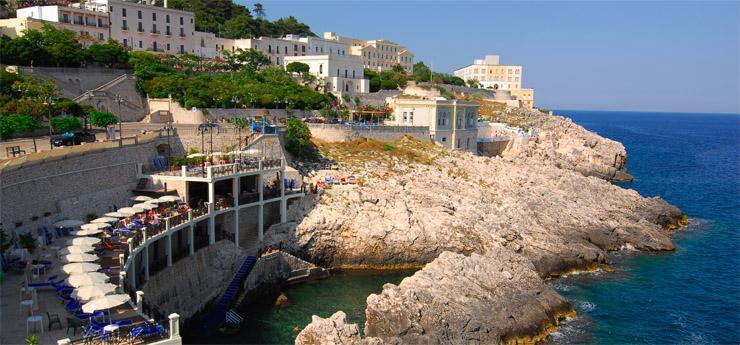 A pochi km potrete rinfrescatevi nella caletta di Acquaviva delle Fonti prima di proseguire per il Ciolo, “piccolo fiordo” del Salento, sovrastato da un cavalcavia alto 37 metri da dove i più temerari si tuffano di fronte alla folla gremita. Con i brividi ancora in corpo è tempo di raggiungere Santa Maria di Leuca, il tacco d’Italia, e ammirare il tramonto dal santuario che sovrasta la cittadina.