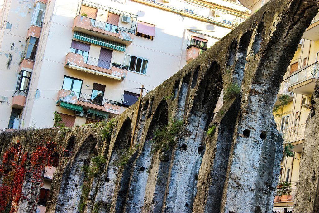 Riprendendo la passeggiata nel centro storico la tappa successiva è l’acquedotto medioevale di Salerno, noto ai cittadini con l’inquietante nome de “I Ponti del Diavolo”. La storia di questa imponente e misteriosa costruzione affonda le radici in epoca Longobarda fra l’VIII e il IX secolo. Nata con lo scopo di approvvigionare l’acqua per alcuni monasteri, in realtà ebbe anche la duplice funzionalità di risolvere il problema dell’assetto idrogeologico (canalizzando le acque) e di difendere la città dall’alto (considerando l’altezza della struttura). Come prevedibile, un’opera geniale e tanto antica non ci mise molto a dare adito a leggende e fatti misteriosi, complice anche l’aspetto a punta degli archi a sesto acuto.