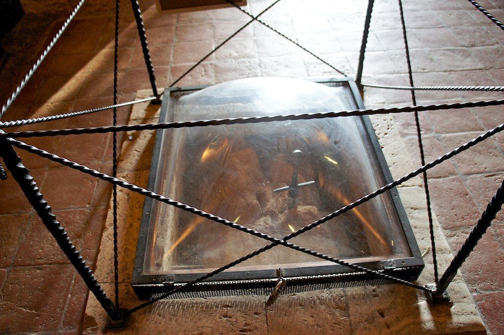 All’interno della sala circolare dell’Eremo di Montesiepi, che domina l’Abbazia di San Galgano dal colle, si trova la leggendaria spada nella roccia. Un simbolo di pace per San Galgano, che decise di conficcare la spada in un masso per tramutarla in una croce su cui pregare, privandola cosìdel significato di guerra che di solito accompagnava tale strumento.