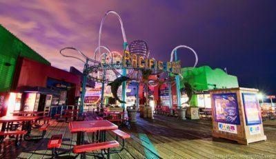 Arrivando sul Pier vero e proprio vi è la sala giochi Playland Arcade e il Pacific Park: il famoso parco divertimenti sull’oceano in cui si possono provare varie attrazioni per adulti e bambini come le montagne russe e la ruota panoramica, le quali offrono una magnifica vista dell’oceno, della spiaggia e della città.