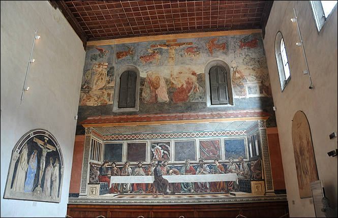 Parto dal Cenacolo di Sant’Apollonia, che si trova in via XXVII aprile: è una zona molto frequentata da studenti perchè vicina alla Facoltà di Lettere e ad alcuni licei. Il cenacolo di Sant’Apollonia ha un grandioso affresco di Andrea del Castagno, i Dodici hanno facce da popolani, gli ambienti sono in colori terrosi e l’affresco è connotato da una candida tovaglia bianca che copre la tavola. Si possono vedere anche altre opere. Il cenacolo è al numero civico 1 e dà le spalle al complesso della mensa universitaria. L’ingresso è gratuito, aperto ogni giorno dalle 8,15 alle 13,50, chiuso il 2° e 4° lunedì del mese e anche la 1a, 3a e 5a domenica del mese.