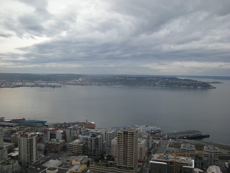 Non avendo abbastanza tempo a disposizione, ho rinunciato al tour sul caffè e mi sono incamminata verso il simbolo di Seattle, lo Space Needle. Sicuramente è un’attrazione turistica, ma non mi sarei mai perdonata di essere arrivata fino al limite occidentale degli Stati Uniti e perdermi la vista dalla torre. Il biglietto non costa poco – quasi venti dollari – ma sono soldi ben spesi. L’ascensore impiega un minuto per salire all’Observation Desk, a 160 metri di altezza. La struttura venne costruita nel 1962 per la fiera mondiale che si svolse quell’anno a Seattle: allora era la costruzione più alta a ovest del Mississippi. La vista dalla cima dello Space Needle è indescrivibile: la città in basso, il monte Rainier di fronte e la baia di Elliott in lontananza.