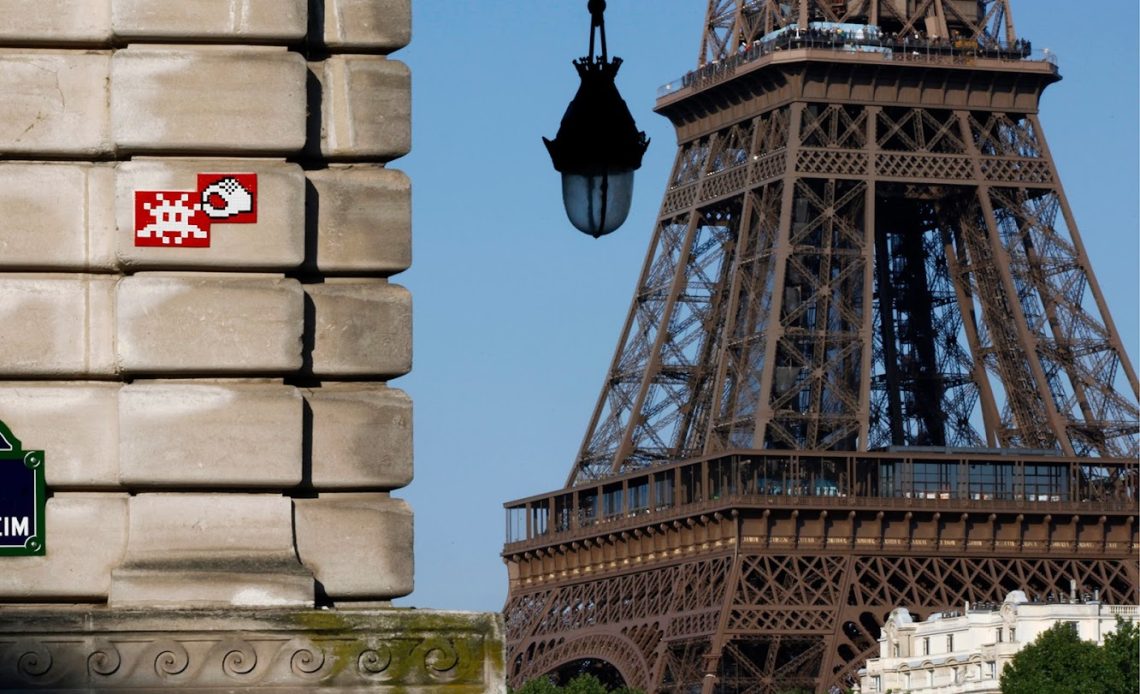 Negli anni ’90, o meglio a cavallo tra i ’90 e i 2000, Frank Slama, un artista di Parigi il cui speudonimo era Invader, iniziò a riempire le strade della sua città con mosaici a forma di invasori alieni che richiamavano il gioco giapponese.