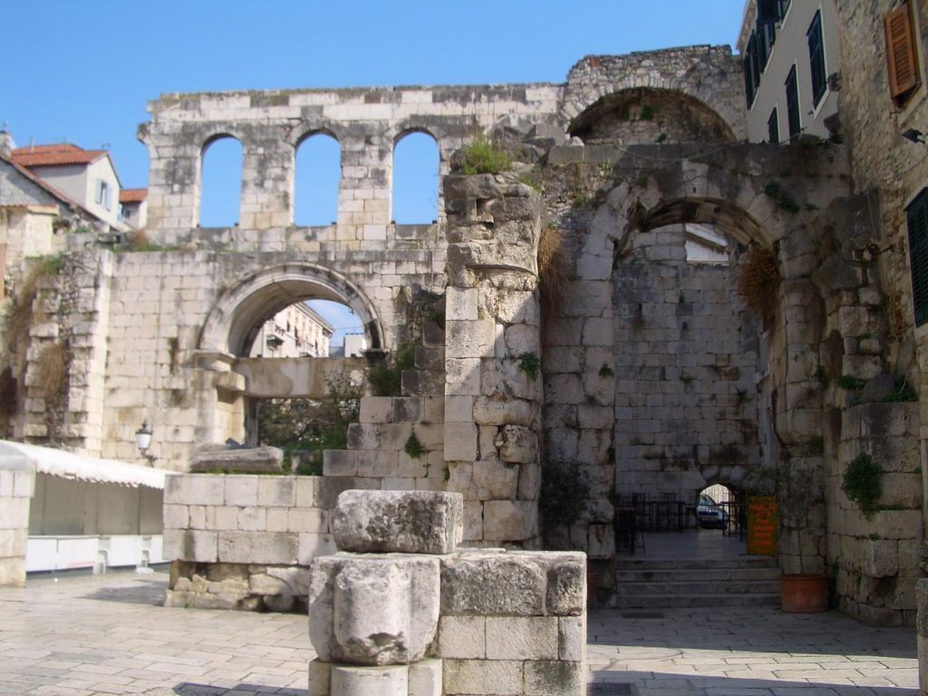 Ma andiamo con ordine: Diocleziano, imperatore romano (236-316 dC) aveva fatto costruire qui un imponente palazzo residenziale dove aveva intenzione di ritirarsi in vecchiaia. Così fece e così fecero altri imperatori dopo di lui, nonché i cittadini ormai romanizzati che a partire dal VII secolo, con l’abbandono di diverse colonie circostanti, si ritirarono tra queste possenti e sicure mura.