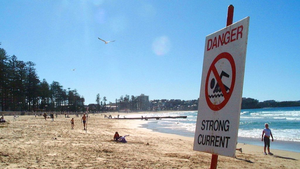 Oltre ai pericoli animali, in acqua, bisogna stare anche attenti alle correnti che prendono il nome di “rips”. Per nuotare o surfare al sicuro controlla la presenza di zone delimitate da bandierine rosse e gialle.