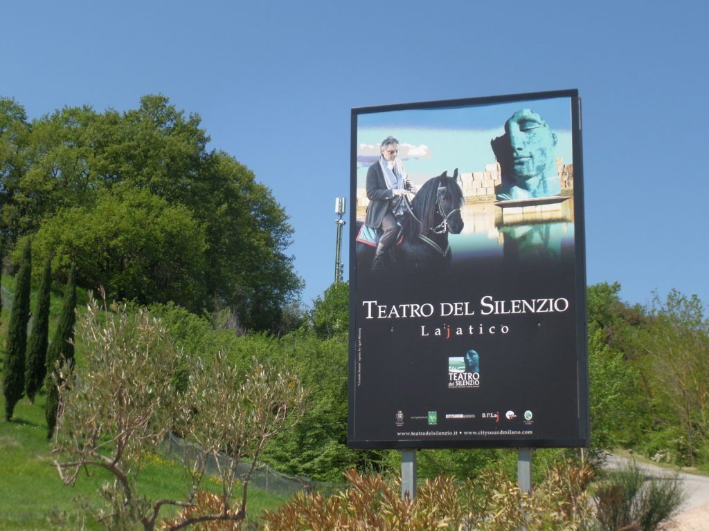 Questo nome vi dice qualcosa? Eh sì, Lajatico è il paese originario del tenore Andrea Bocelli. Tutto da queste parti parla di lui, i manifesti appesi in strada, alcuni locali che vendono prodotti dell’Azienda Bocelli, le grandi foto che illustrano le azioni di beneficienza svolte dalla Andrea Bocelli Foundation (ABF) soprattutto a Haiti, e poi il Teatro del Silenzio.