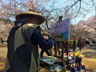 Questi tre parchi, i più grandi e famosi della città, sono allestiti per l’occasione con ampi teli azzurri stesi a terra sotto i ciliegi, questo per permettere alle persone in occasione dell’hanami di sostare sedendosi e rilassandosi all’ombra delle piante o di fare divertenti e chiassosi pic nic.