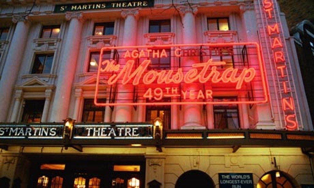 Spostandosi nel West End è invece possibile visitare St. Martin’s Theater, il teatro in cui è andato di scena il suo giallo Trappola per Topi durante gli ultimi 40 anni! Lo show ha battuto ogni record registrando oltre 25.000 performance a Londra. Tra Cranbourn Street e Great Newport Street è inoltre possibile visitare il suo memoriale, un libro di 2 metri e mezzo che contiene il suo busto e informazioni sulla sua vita e le sue opere.