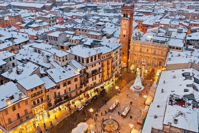 Verona è molto attiva durante questo periodo dell’anno e le sue tradizioni cominciano con il 13 Dicembre, giorno di Santa Lucia. Qui tradizionalmente è la Santa a portare la maggioranza dei regali ai bambini, non il classico Babbo Natale ed è tipico per i bimbi veronesi lasciare un piatto vuoto la sera del 12 dicembre, per poi ritrovarlo pieno di dolci la mattina dopo. Per l’occasione la piazza principale della città, Piazza Brà, si anima e riempie di più di 300 banchetti pieni di dolciumi, leccornie, oggetti artigianali e vitalità, conosciuti come i “banchetti de Santa Lussia”.