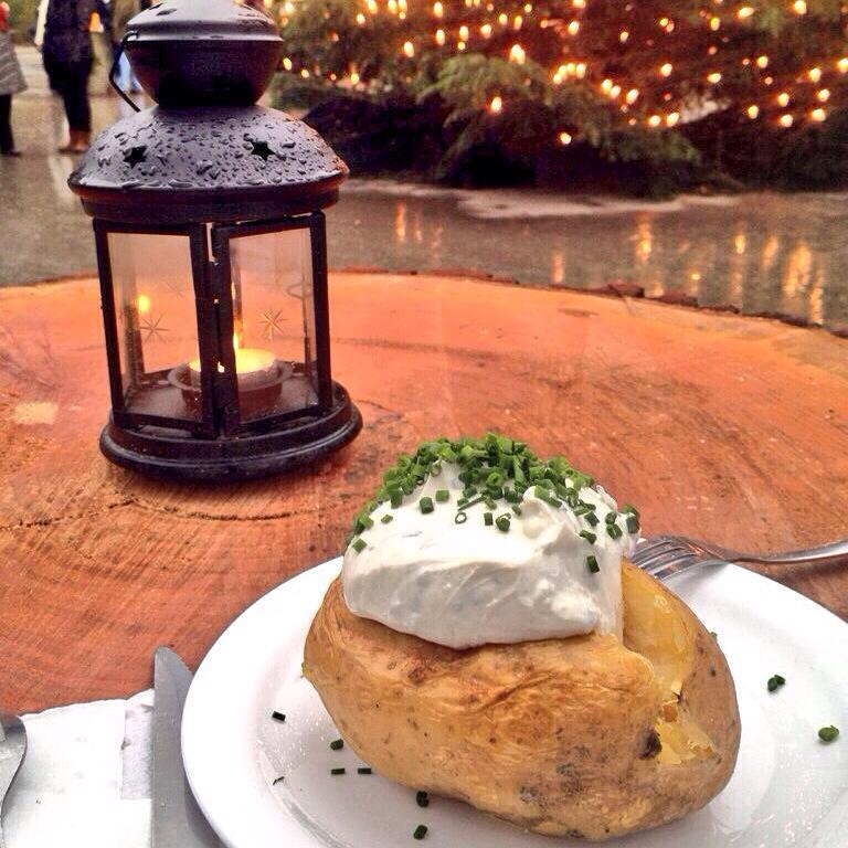 Nel centro della grande piazze su cui si trovano tutte le 175 casette di Natale si trovano i punti ristoro che si dividono in punti in cui vengono vendute solo cioccolate calde e caffè, gluwein e birre, zuppe e panini con salsicce tedesche. La cioccolata calda con la panna è qualcosa di gustosissimo, se vi stancate del gluwein provate questa!