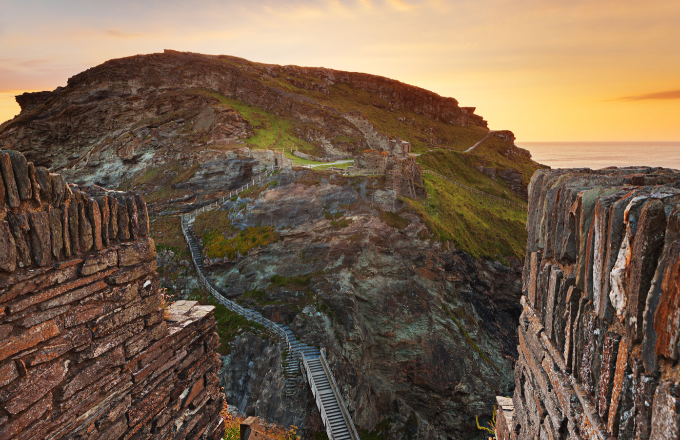 Storia e leggenda sono inseparabili in questa meravigliosa Tintagel. Dal V al VII secolo d.C. circa fu un’importante roccaforte e residenza dei sovrani della Cornovaglia. Probabilmente furono i ricordi di questa sede che ispirarono lo scrittore del XII secolo Geoffrey di Monmouth a nominarla nella sua History of the Kings of Britain come il luogo in cui fu concepito re Artù, figlio di re Uther Pendragon e lady Igraine, con l’aiuto di Merlino.
